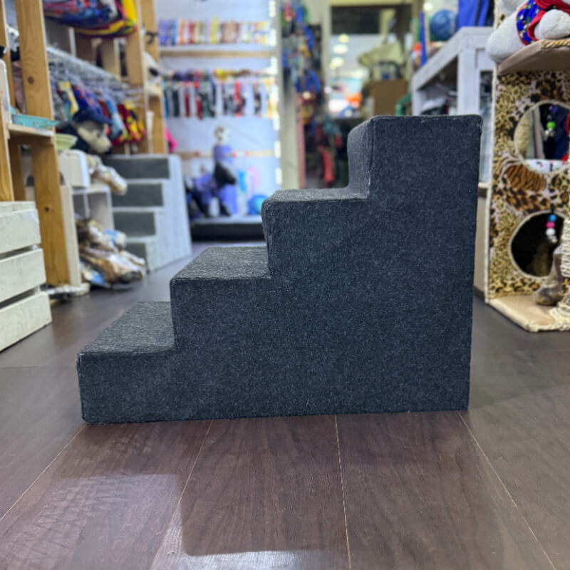 ESCALERA GRIS OSCURA DE MADERA FORRADO CON TAPIZON