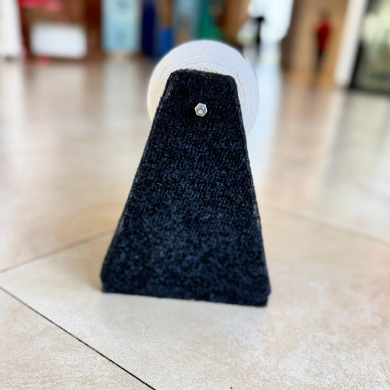 RASCADOR FORMA BOLA GIRATORIA NEGRO DE MADERA FORRADO DE TAPIZON