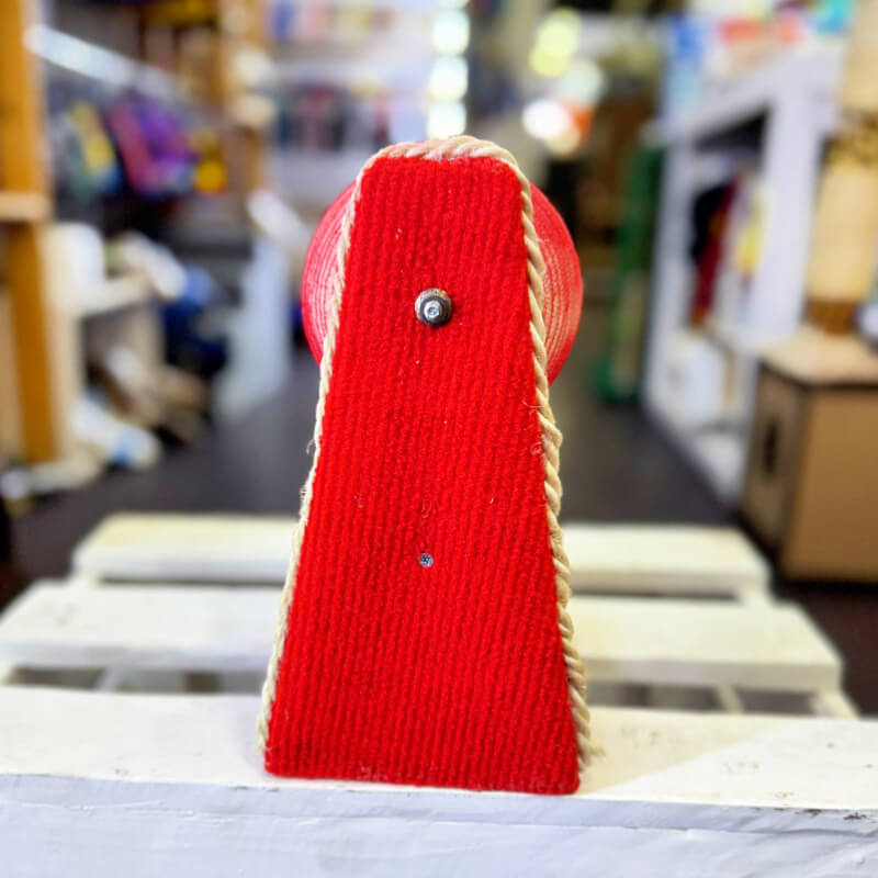 RASCADOR FORMA BOLA GIRATORIA ROJO DE MADERA FORRADO DE TAPIZON