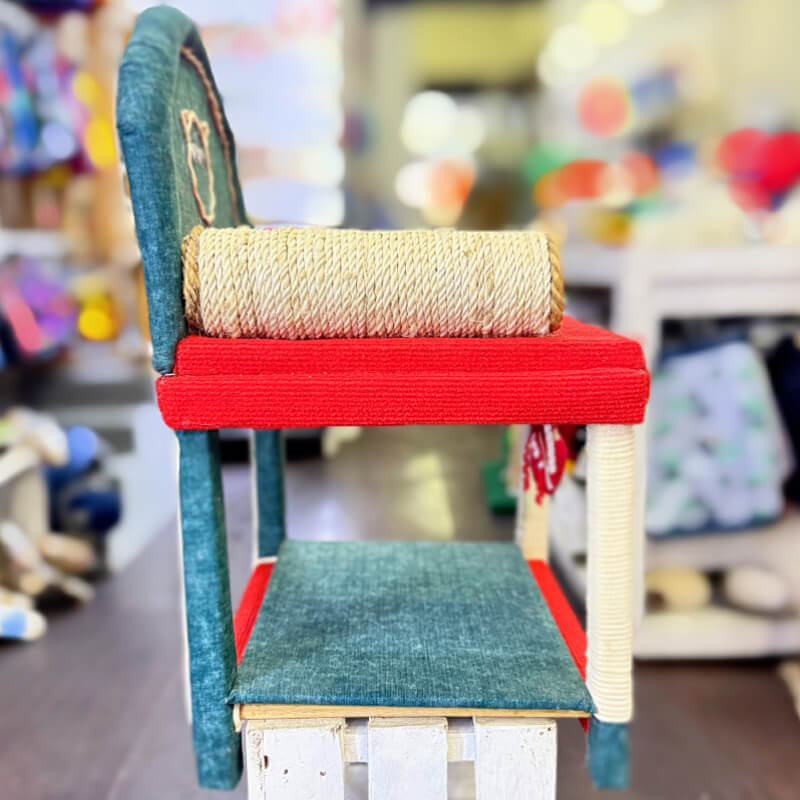 TORRE CAMA RASCADOR ROJO DE MADERA FORRADO CON TAPIZON